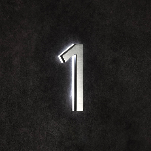 LUMO Lighting | Contemporary Illuminated Address Number 5" (Outdoor) - Silver/Brushed Aluminum