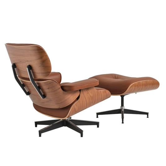 Eames Chair & Stool Brown Leather Walnut Plywood Premium Reproduction