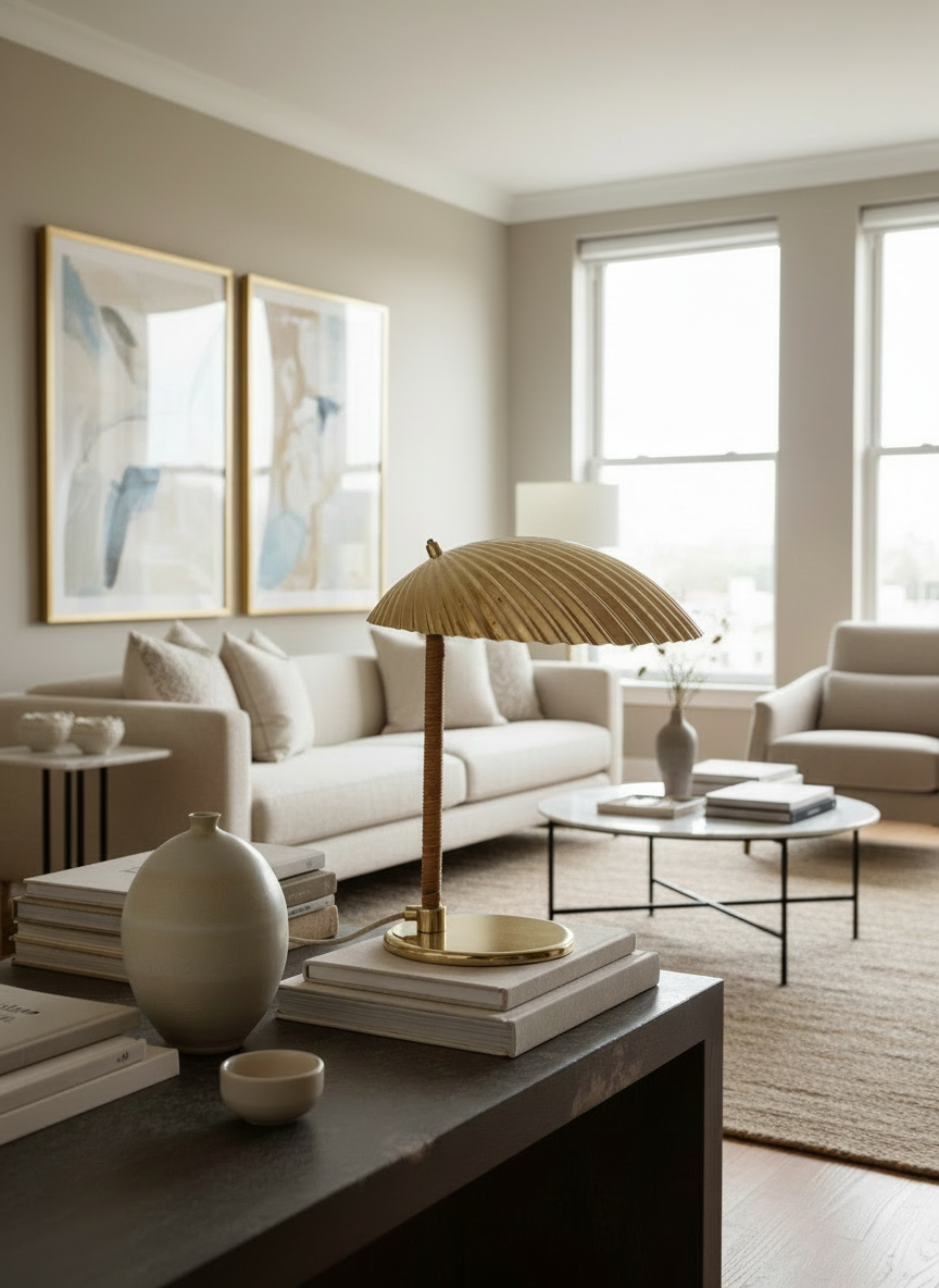 This premium reproduction of Paavo Tynell’s iconic 5321 Table Lamp captures the poetic spirit and meticulous artistry of the original 1941 design. Tynell’s whimsical homage to nature is beautifully reimagined in the lamp’s signature brass shade, delicately shaped like a sea shell. From beneath this sculptural canopy, the bulb glows softly—evoking the charm of a hidden pearl and bringing a sense of romance and playfulness to any interior.
