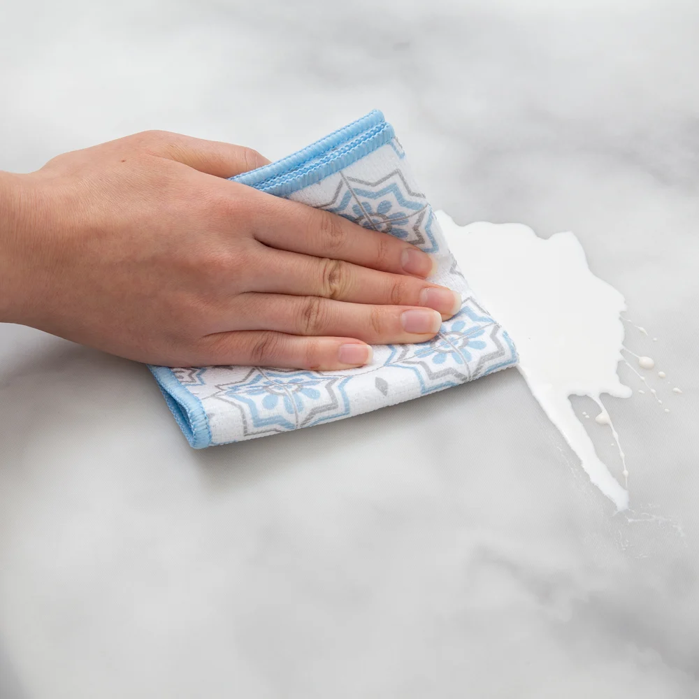 Our anti-fouling treated Marble-Style Silicone Kitchen Mat allows for quick wipe-downs, even during the messiest cooking sessions. Plus, it's washable for thorough cleaning.